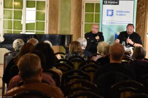 To prawda, trzeba było się zatem mocno skupić, kiedy czytane były fragmenty zapisków opublikowanych w książce. Równocześnie z lekturą tekstów na ekranie wyświetlały się uzupełniające je ilustracje. Bardzo licznie zgromadzona publiczność, mimo zastrzeżeń autora odnośnie przystępności tekstów, najwyraźniej nie miała problemów z ich zrozumieniem, ponieważ żywo reagowała, czasem śmiechem, bo twórczość Roberta skrzy się humorem. Nieraz bywa sarkastyczna, jeśli temat budzi jego dezaprobatę. Krytyczne, ale takie „z przymrużeniem oka”, a więc nie utyskujące i gniewne spojrzenie na rzeczywistość jest dla niego typowe.